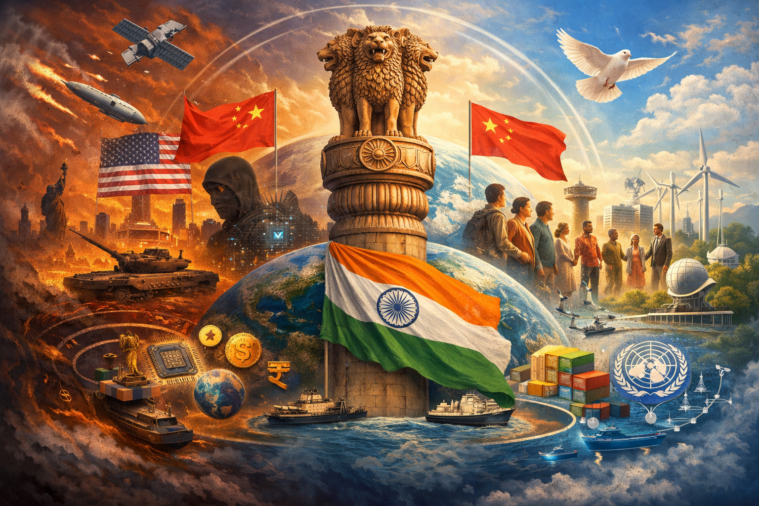 संक्रमणकालीन विश्व व्यवस्था और भारत: वर्चस्व से ‘वसुधैव कुटुंबकम’ तक