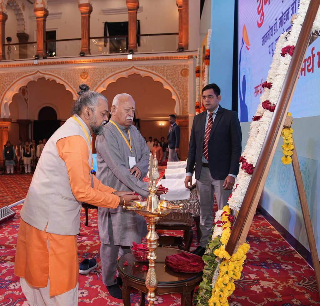 भोपाल करुणा धाम के प्रमुख सुदेश शांडिल्य जी महाराज ने युवाओं से कहा कि अक्सर हम सुनते हैं “समरथ को नहीं दोष गुसाई”। इसका यह मतलब नहीं कि कोई बलवान है, उसको दोष नहीं दिया जाता। वास्तव में समर्थ वह है, जिसकी नीयत में दोष नहीं हो। उन्होंने कहा कि राष्ट्रीय स्वयंसेवक संघ समर्थ बनेगा, तभी भारत विश्वगुरु बनेगा। इसलिए संघ का समर्थ होना जरूरी है। परोपकार, सत्चरित्र, जनकल्याण की भावना और यश के पीछे नहीं भागने की भावना कहीं दिखाई दे रही है, तो वह केवल संघ है। उन्होंने सूर्य, गंगा का उदाहरण देते हुए कहा कि सूर्य सबको बराबर रोशनी देता है। गंगा के जल में लोग स्नान भी करते हैं और गंदे नाले भी मिलते हैं। लेकिन वह अविरल बह रही है, क्योंकि उसमें सामर्थ्य है सभी को समाहित करने का। ऐसे ही युवाओं को सामर्थ्यवान बनना है। भारत में युवाओं को सामर्थ्यवान बनाने का काम केवल संघ कर रहा है। उसकी शाखाओं में 100 साल से व्यक्ति निर्माण हो रहा है। साथ ही ईश्वर की आराधना करें, वह आपको सामर्थ्य देता है।
