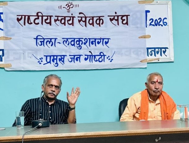 लवकुशनगर। राष्ट्रीय स्वयंसेवक संघ के शताब्दी वर्ष के उपलक्ष्य में लवकुशनगर स्थित सृजन महाविद्यालय में प्रमुख जनगोष्ठी का आयोजन किया गया। कार्यक्रम की शुरुआत दीप प्रज्वलन के साथ हुई, जिसमें मुख्य वक्ता के रूप में प्रज्ञा प्रवाह के अखिल भारतीय संयोजक जे. नंदकुमार उपस्थित रहे। उनके साथ विभाग संचालक नर्मदा प्रसाद गुप्ता भी मंच पर मौजूद रहे।